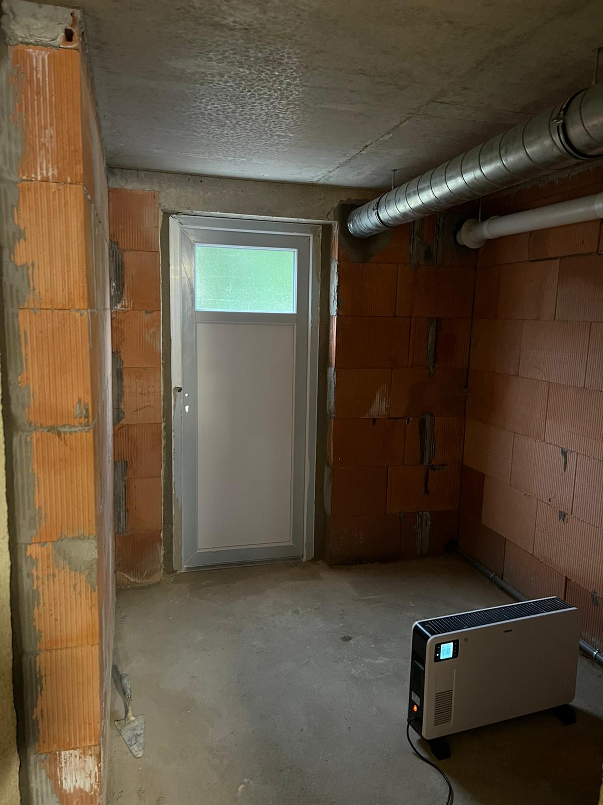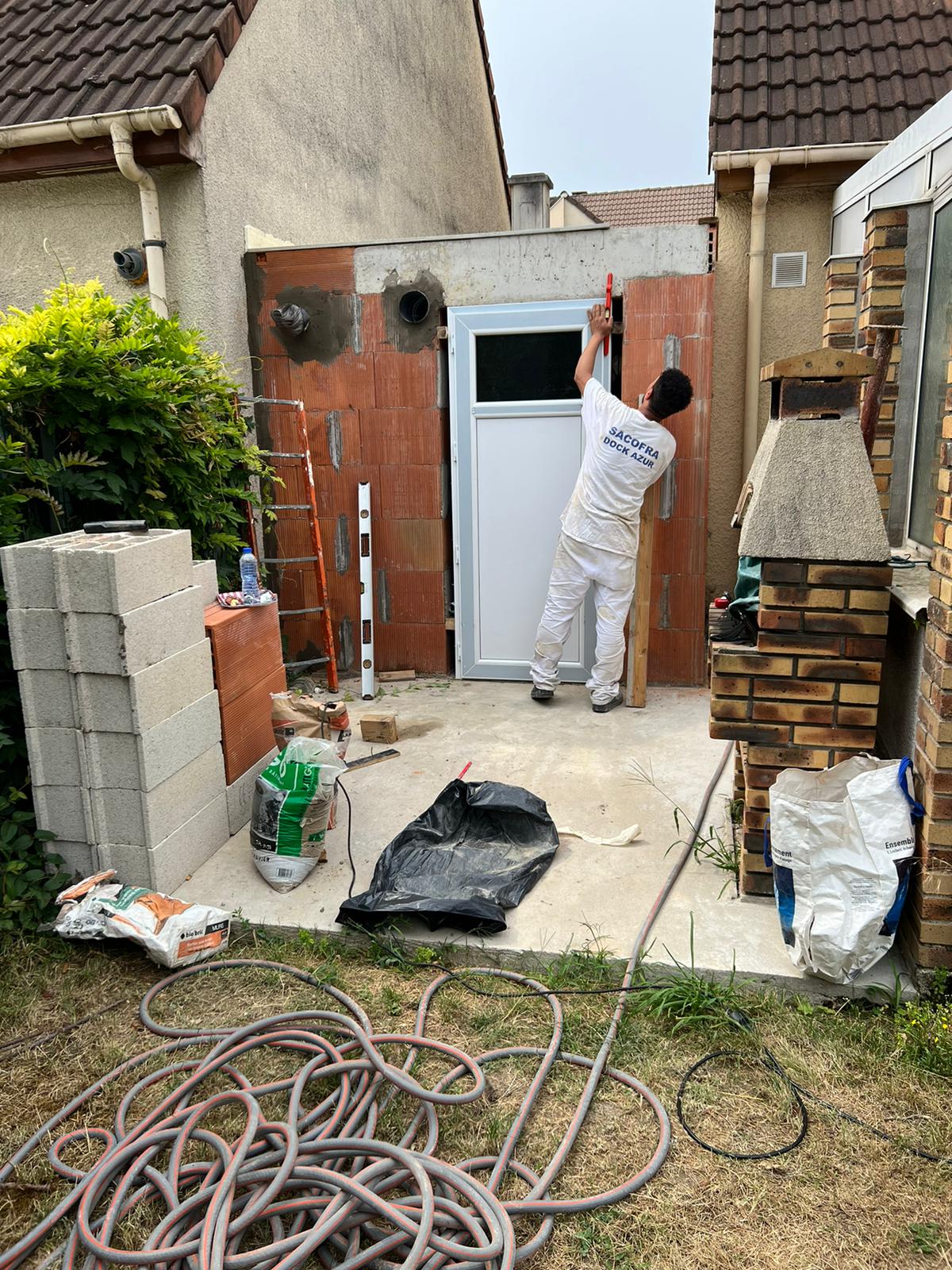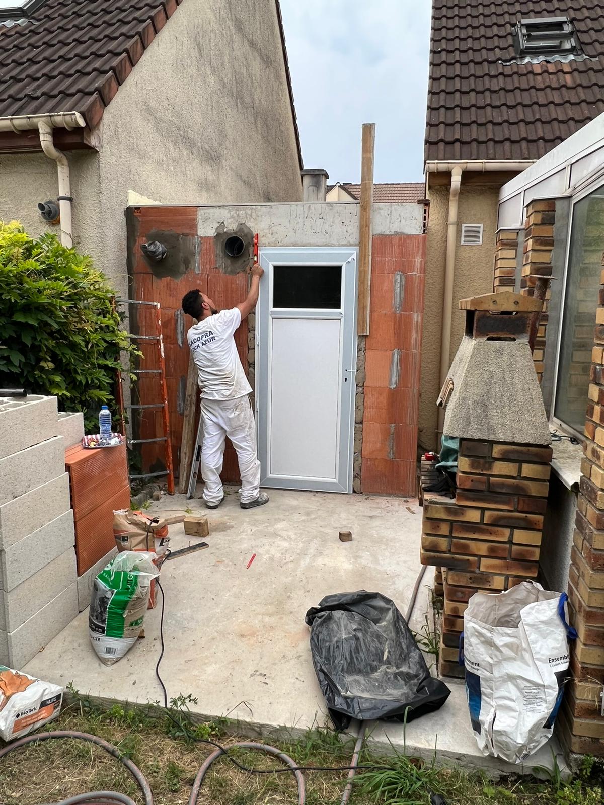 Decompactage de la terre. Maison d’architecte, extension. Réalisation d’une fondation avec radier béton, mise en place d’un système pour lutter contre les remontées d humidités par capillarite. Réalisation d’un plancher béton. Réalisation de murs par des parpaings en brique, montage d huisseries (portes et fenêtres), jointage et étanchéité. Carrelage au sol, reagreage, jointage.